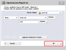 Con alcuni ambienti di rete, potrebbe essere necessario configurare precedentemente i server LDAP. (Vedere "Registrazione di un server LDAP".)