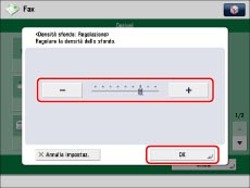 Se si regola la densità dello sfondo premendo [Regola] per <Densità sfondo>, l'impostazione [Autom.] viene annullata. Allo stesso modo, se si preme [Autom.] mentre si effettuano regolazioni manuali in [Regola], le regolazioni vengono annullate. La macchina regola automaticamente la densità in base allo sfondo.