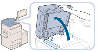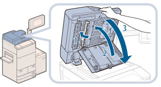 1.Tirare la leva sopra l'alimentatore e aprire il pannello di scansione dei documenti. |