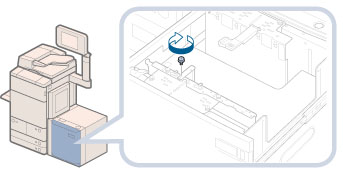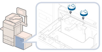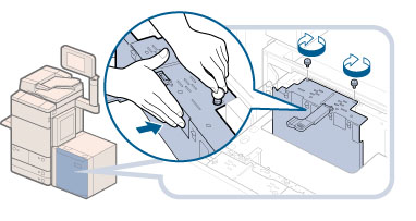 Se si serrano le viti blu senza premere la piastra di modifica del formato interna lontano da sé, questa potrebbe essere fissata in posizione inclinata. L'utilizzo del paper deck con la piastra di modifica del formato interna inclinata potrebbe causare l'alimentazione della carta in posizione obliqua, con conseguente scarsa qualità della stampa e possibilità di inceppamento della carta. Quindi, assicurarsi di serrare le viti blu tenendo premuta la piastra di modifica del formato interna lontano da sé.