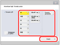 Per selezionare un formato della carta in pollici, premere [Dimensioni in pollici].