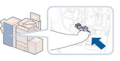 Fare attenzione quando si utilizzano le apparecchiature opzionali installate sulla macchina. Quando viene aperto il coperchio di un'unità opzionale per sostituire una cartuccia dei punti, per eliminare i residui di foratura, i residui di rifilatura, i punti di scarto o per risolvere inceppamenti di carta o di punti, è possibile che vengano ancora consegnate delle stampe se altre unità opzionali stanno funzionando normalmente e non sono coinvolte nella procedura di rimozione dell'inceppamento della carta o dei punti.