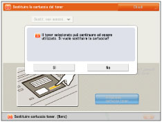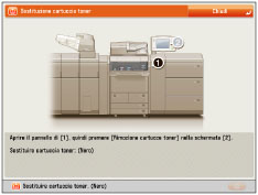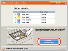Per istruzioni dettagliate sulla sostituzione della cartuccia del toner, selezionare [Indietro] o [Avanti] sul pannello digitale.