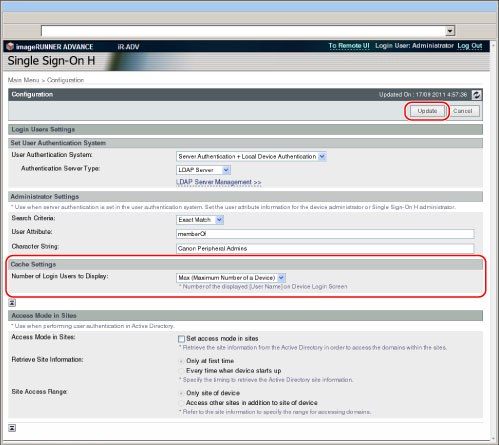 Selezionare il numero di nomi utente da visualizzare da [Number of Login Users to Display] → fare clic su [Update].