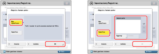 Registrazione del numero di porta per le funzioni che si vuole consentire.
