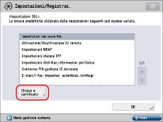 Dopo avere controllato la funzione per la quale si utilizzano comunicazioni SSL protette, è possibile impostare la coppia di chiavi in uso.