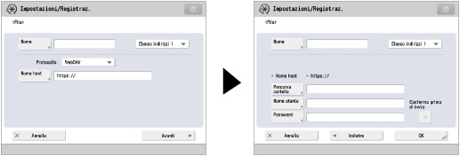 Se si cambia la lingua del pannello digitale, [Nome host] e [Percorso cartella] potrebbero non essere visualizzati correttamente.