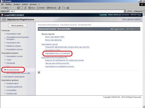 → [Impostazioni funzione] → [Ricezione/Inoltro] → [Impostazioni comuni] → [Impostazione mailbox fax/I-Fax] → [Utilizzo blocco in memoria fax].
