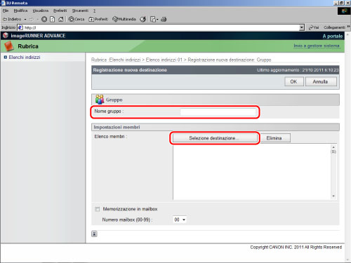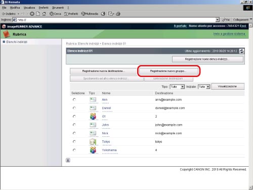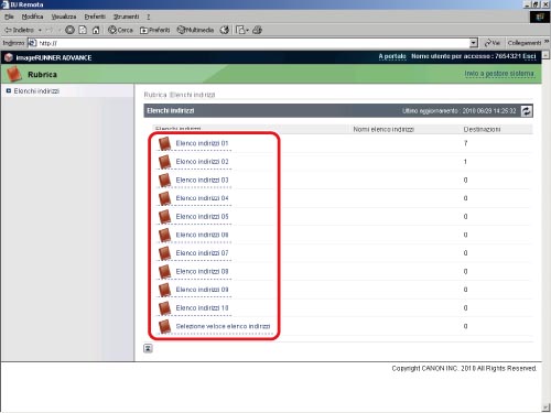 Accedere alla IU remota → fare clic su [Rubrica] → selezionare l'elenco indirizzi dall'elenco.