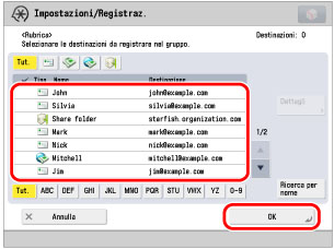 Selezionare gli indirizzi e-mail da registrare nel gruppo → fare clic su [OK].