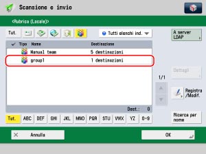 Selezionare la destinazione appena registrata [gruppo1] → premere [OK].