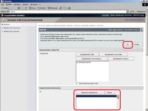Accedere alla IU remota → fare clic su [Accesso a file ricevuti/memorizzati] → [Mailbox] → selezionare il numero di Mailbox in cui è memorizzato il documento.
