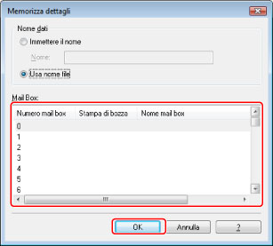 Selezionare il numero di mailbox in cui si vuole eseguire la registrazione → fare clic su [OK].