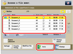 Selezionare i documenti che si desidera inviare → fare clic su [Invio...].