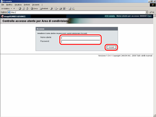 Digitare il nome utente e la password → fare clic su [Accedi].