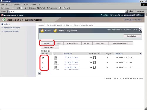 È possibile selezionare più file memorizzati nella mailbox e inviarli contemporaneamente.