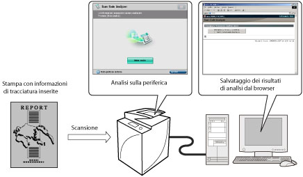 È possibile analizzare le informazioni di tracciatura inserite nel codice TL o nel codice QR riportate sulla stampa e scoprire da chi, quando e con quale macchina è stato stampato il documento. In caso di utilizzo del codice QR, è possibile inserire nella stampa due informazioni di generazione tracciatura, la prima e l'ultima, o quella originale e l'ultima.