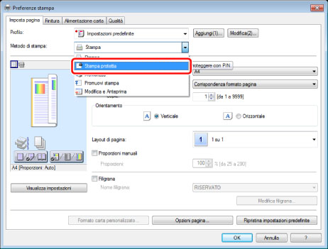Selezionare [Stampa protetta] da [Metodo di stampa].