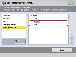 Premere [Filtro indirizzi IPv6] → [Filtro RX].