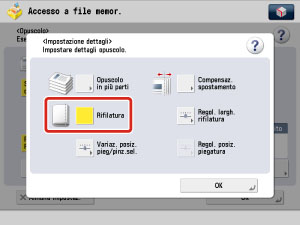 Se si desidera che il bordo dell'opuscolo venga rifilato, premere [Rifilatura].