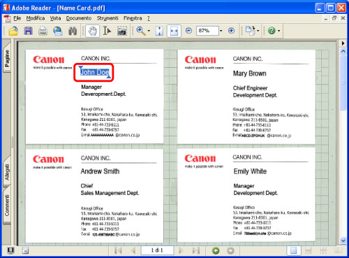 Conversione di biglietti da visita in PDF ricercabile