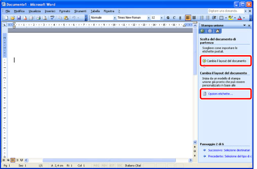 Selezionare [Cambia il layout del documento] per [Scelta del documento di partenza] → fare clic su [Opzioni etichette].