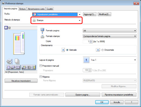 Selezionare [Stampa] per [Metodo di stampa].