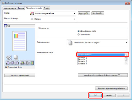 Selezionare la fonte alimentazione carta che contiene le etichette → fare clic su [OK].