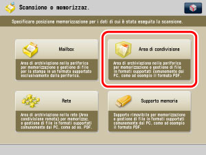 Memorizzare il biglietto da visita scansionato nell'Area di condivisione della macchina, nell'Area di condivisione di un'altra macchina in rete o nel supporto di memoria.