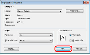Selezionare [Stampa] dal menu [File] del software applicativo utilizzato per la stampa del file (lavoro) → selezionare la stampante da utilizzare e fare clic su [Proprietà] nella finestra di dialogo [Stampa].