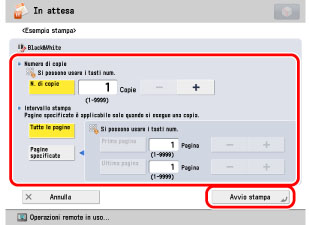 Specificare il numero di stampe e l'intervallo di stampa → premere [Avvio stampa].