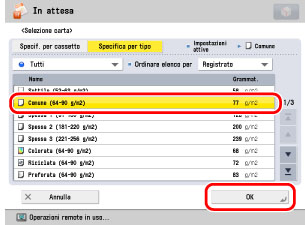 Selezionare il tipo di carta da utilizzare dall'elenco → premere [OK].
