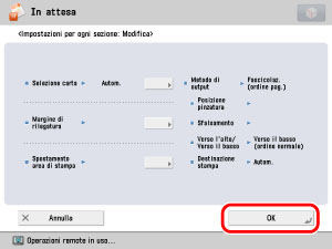 Selezionare [In attesa] per [Metodo di output] → fare clic su [OK].