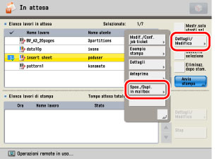 Selezionare il lavoro per il quale è stato modificato il numero di copie al punto precedente → premere [Dettagli/Modifica] → [Spos./Dupl. in mailbox].