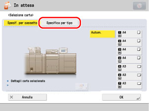 Quando la carta disponibile a magazzino si esaurisce, è possibile cambiare il tipo di carta prima della stampa.