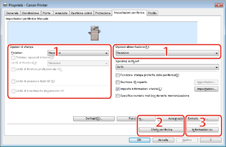 Gli elementi visualizzati nella schermata del driver della stampante e le funzioni disponibili possono variare a seconda del modello utilizzato.