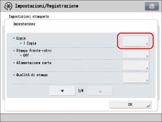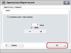 Utilizzare [-] o [+] per impostare il numero di copie desiderato.