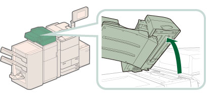 La parte della Document Insertion Unit-H1 potrebbe interferire con il finisher durante la rimozione della carta inceppata. Sollevare l'inseritore prima di rimuovere la carta inceppata dal finisher.