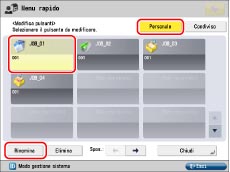 Per istruzioni sull'immissione del nome del pulsante e del commento, vedere "Registrazione di un pulsante personalizzato/pulsante condiviso".