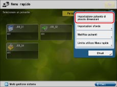 È possibile impostare la modalità di visualizzazione della schermata del Menu rapido più rispondente alle proprie esigenze. Questa sezione descrive come modificare la dimensione di un pulsante, da grande a piccola.