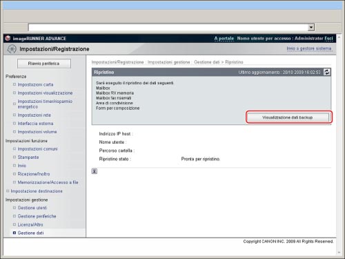 Per eseguire il backup/ripristino dei dati memorizzati, è necessario eseguire l'accesso come amministratore.