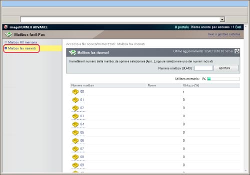 La mailbox desiderata può anche essere selezionata immettendo il rispettivo numero accanto a <Numero mailbox (00-49)> → fare clic su [Apertura...].