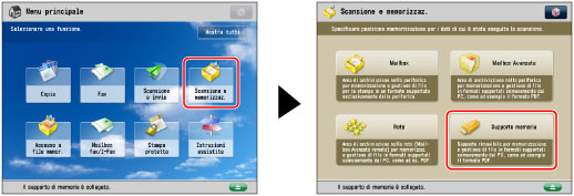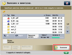 È necessario impostare <Utilizzo funzione Scansione> in [Utilizzo funzione Scansione/Stampa] su 'On' per eseguire la scansione degli originali nel supporto memoria. (Vedere "Impostazioni supporto memoria".)