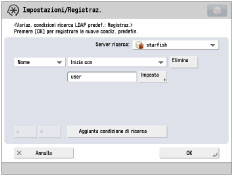 Possono anche essere aggiunti attributi di ricerca supplementari definiti dall'utente. (Vedere "Registrazione/modifica degli attributi di ricerca per LDAP".)