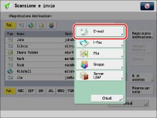 Premere [Scansione e invio] → [Rubrica].
