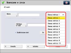 Aprire l'elenco a comparsa → selezionare un elenco indirizzi dal n. 1 al n. 10.
