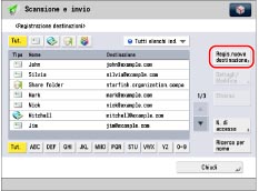 Premere [Scansione e invio] → [Rubrica].