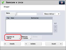 Per creare un indirizzo di gruppo, è necessario che le destinazioni (quali gli indirizzi e-mail e gli indirizzi di file server) siano state preventivamente registrate.