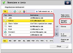 Selezionare la destinazione da modificare → premere [Dettagli/Modifica].