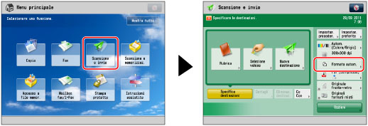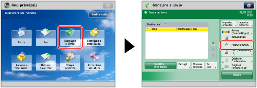Premere [Scansione e invio] → premere il pulsante del formato di scansione.